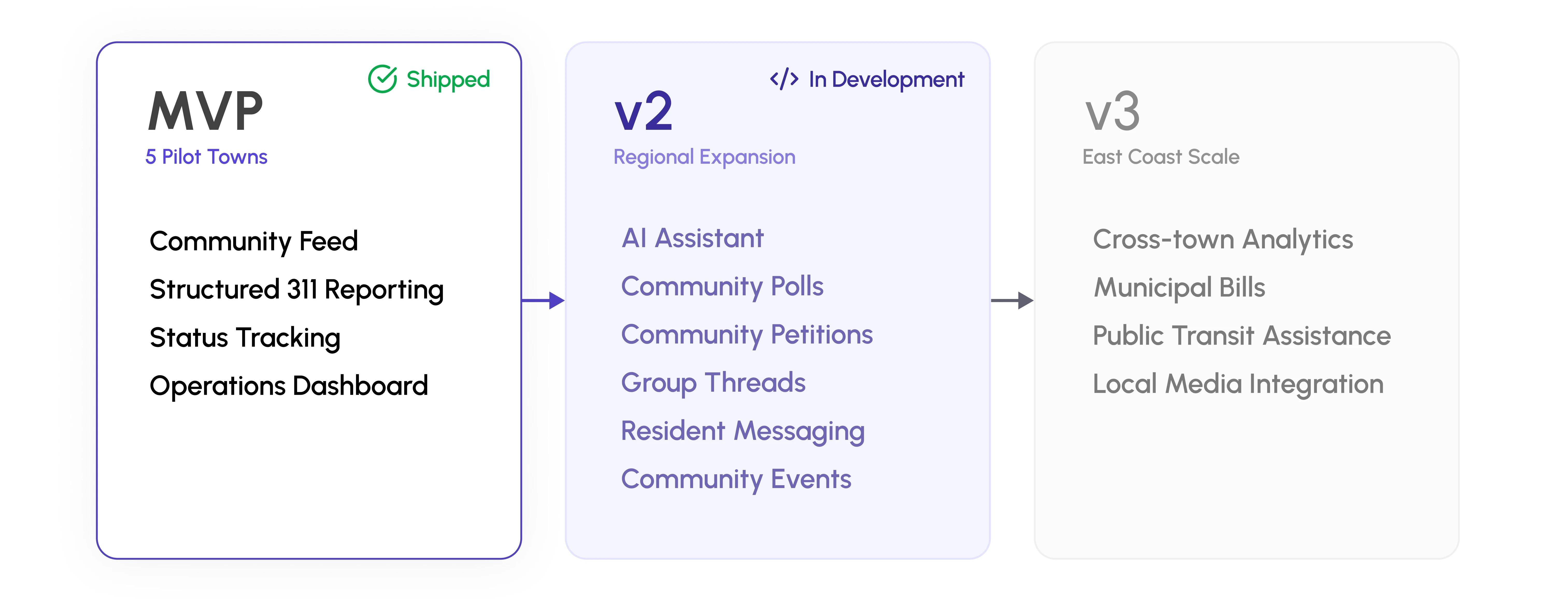 Five towns launched in six months, with routing, reporting, and community active across all pilots, and the architecture ready for everything V2 demanded.