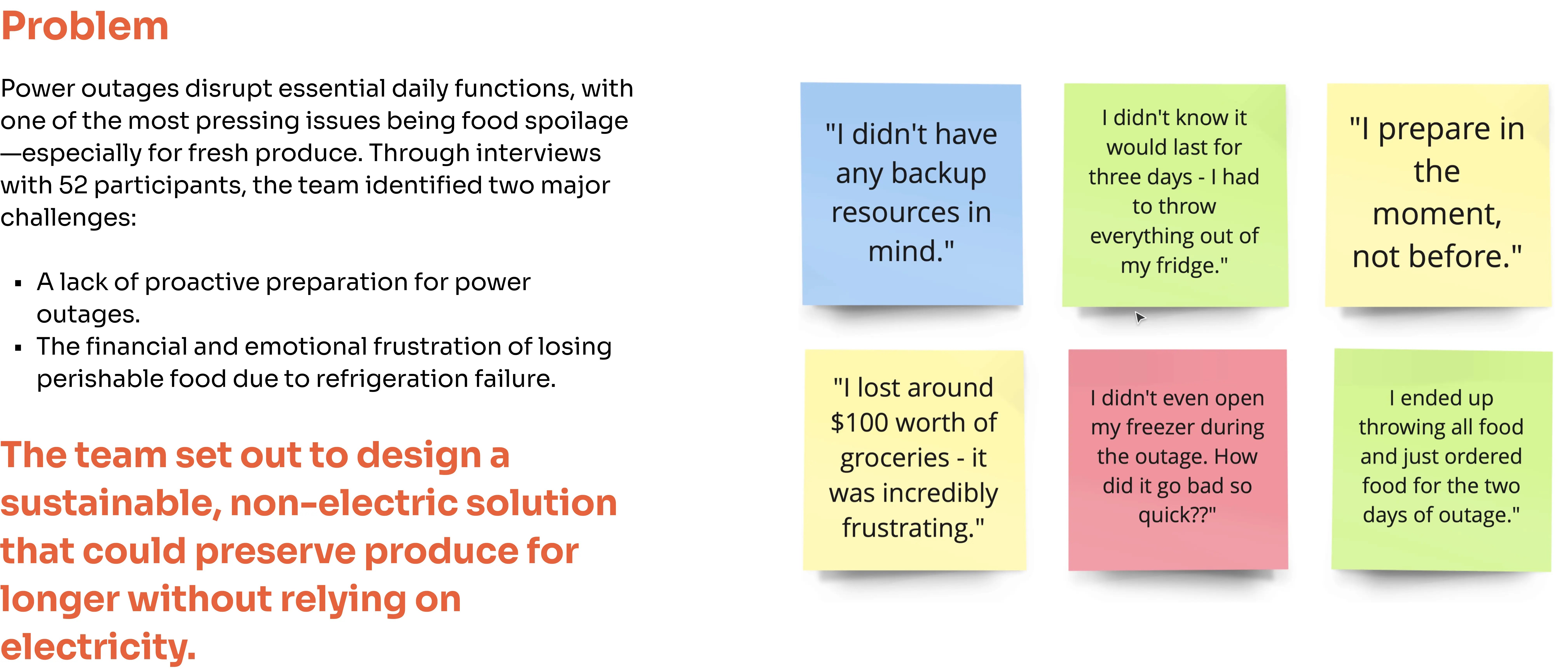 We conducted semi-structured interviews with 52 participants to uncover their pain points during power outages.