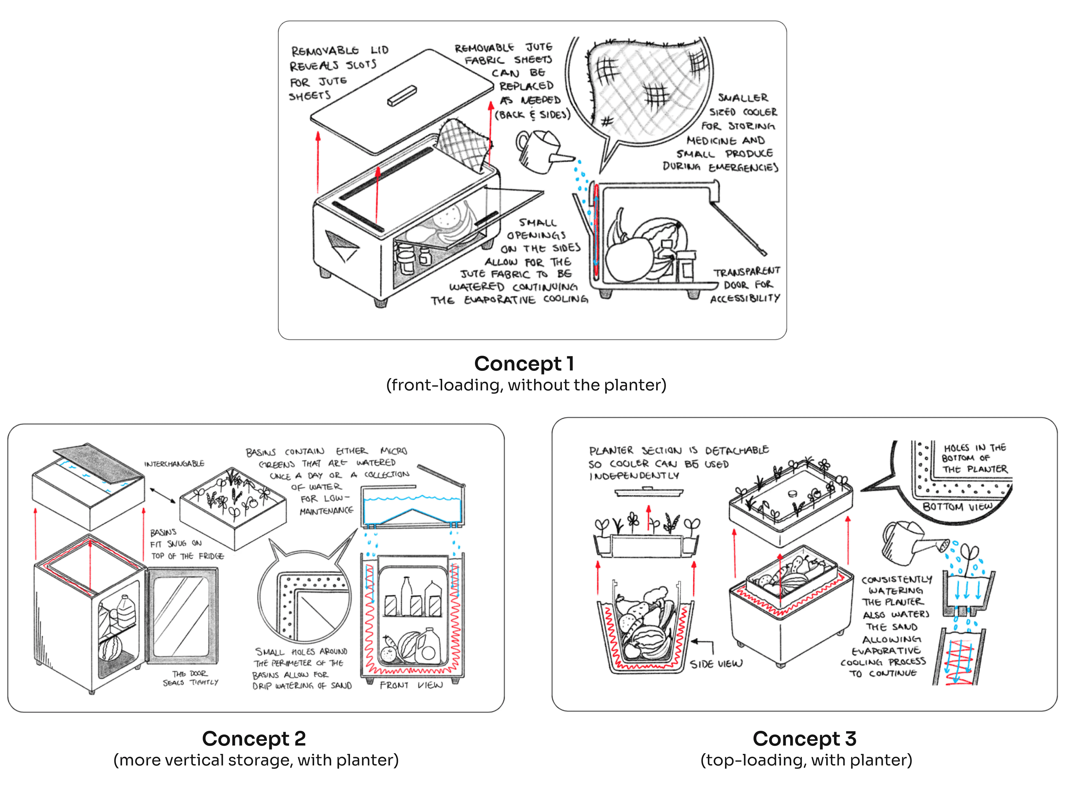 Concept 2: A larger, outdoor-friendly design with increased storage capacity and transparent doors for improved visibility, catering to users with higher storage needs.