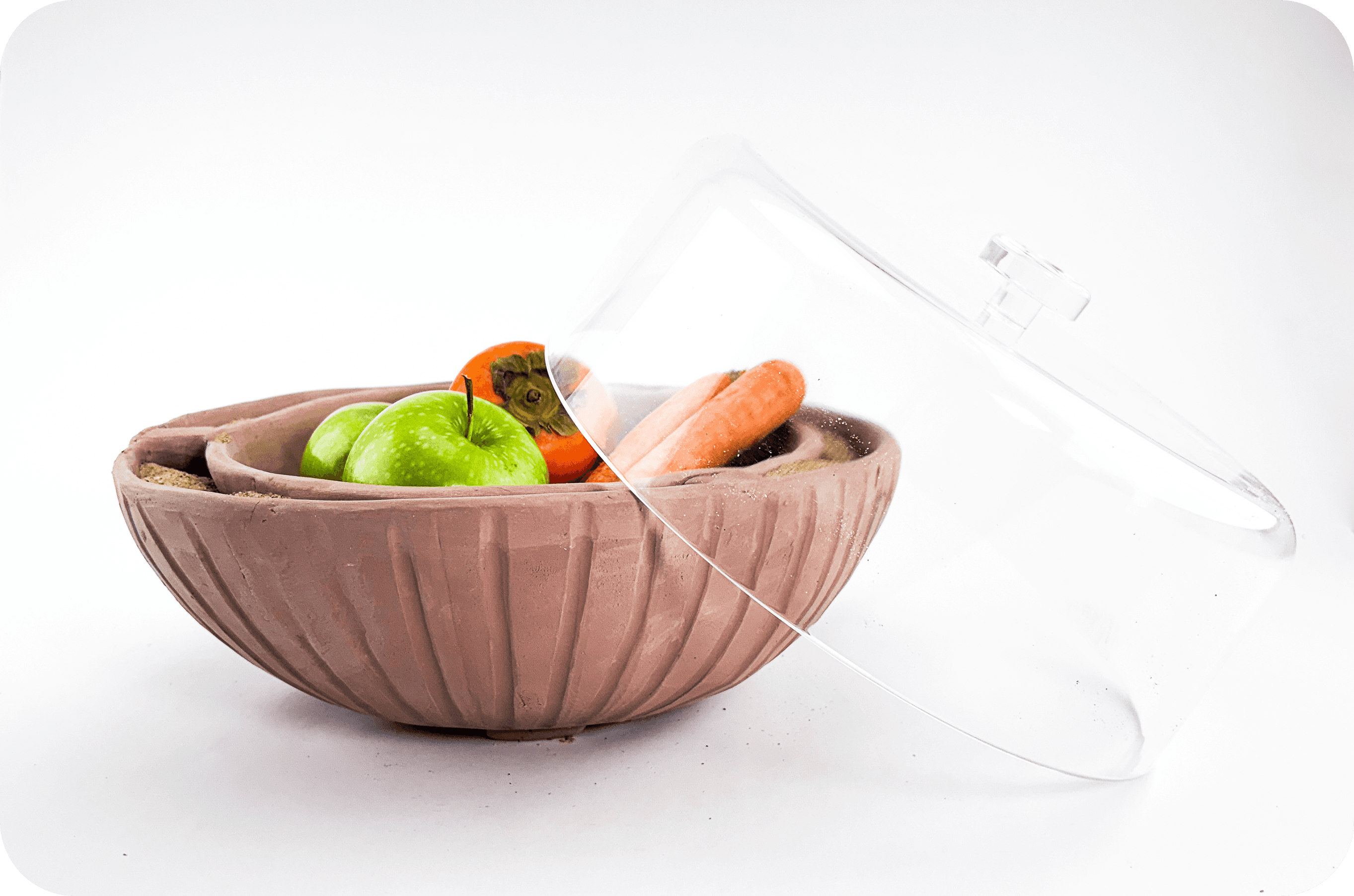 The planter feature was removed and we resorted to a simpler bowl-like design for easier manufacturing for our trade show. For the time being, we used a transparent plastic cover instead of an insulated ceramic cover due to budget limitations. Sand was still used as an insulating layer, but the smaller design tackled the weight issue and the prototype weighed around 20 pounds.