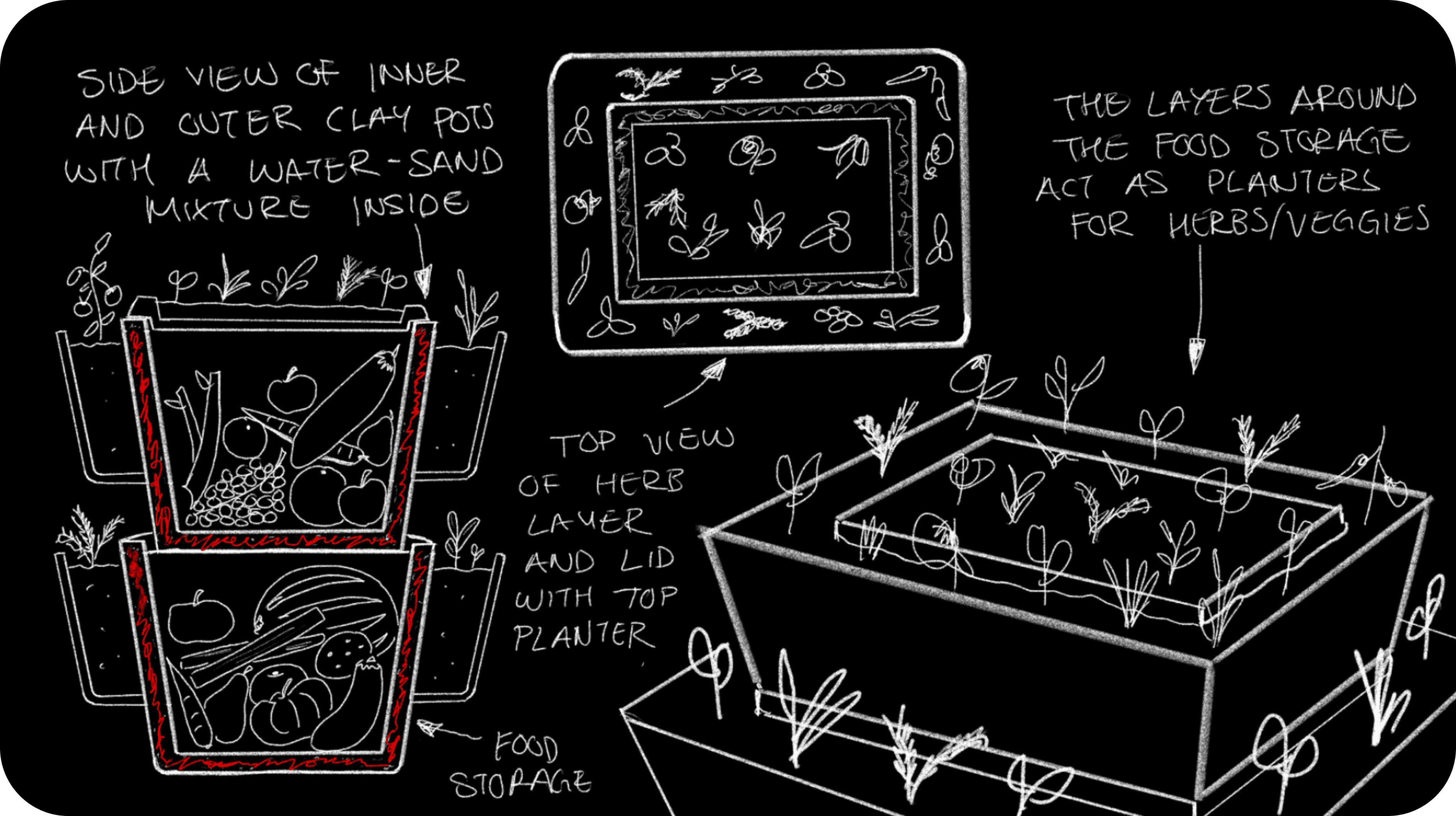 Concept 3: A design inspired by traditional flower pots, blending food storage with a familiar planter aesthetic, designed to emphasize familiarity and ease of integration into home environments.