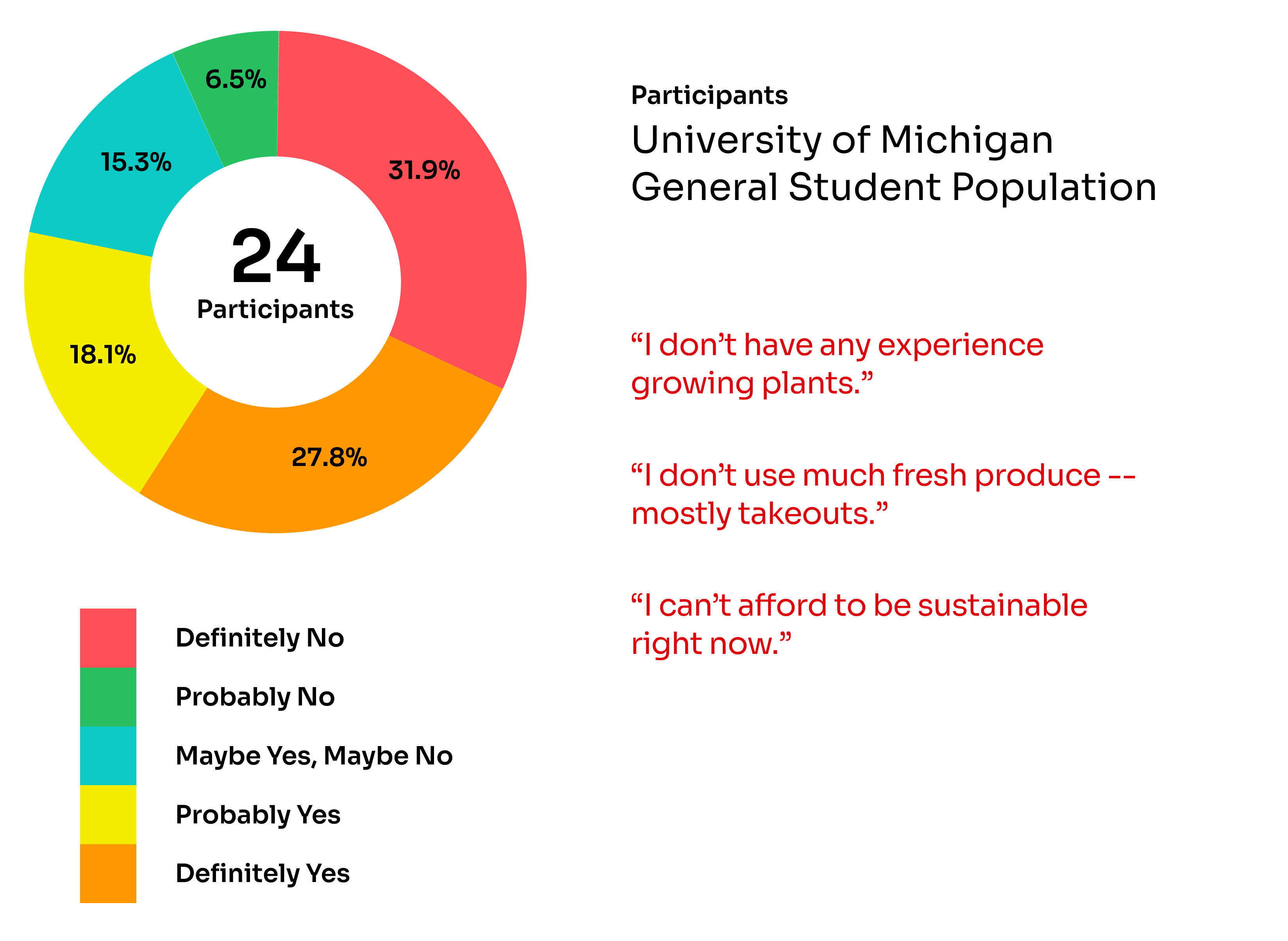 Initially, we conducted concept testing with our proposed target audience at the time — the student population. Many college students appreciate and understand the value of investing in sustainable products and healthy lifestyles (like buying produce/caring for plants) - but it is simply not realistic for them to engage in doing so (finances, time constraints).