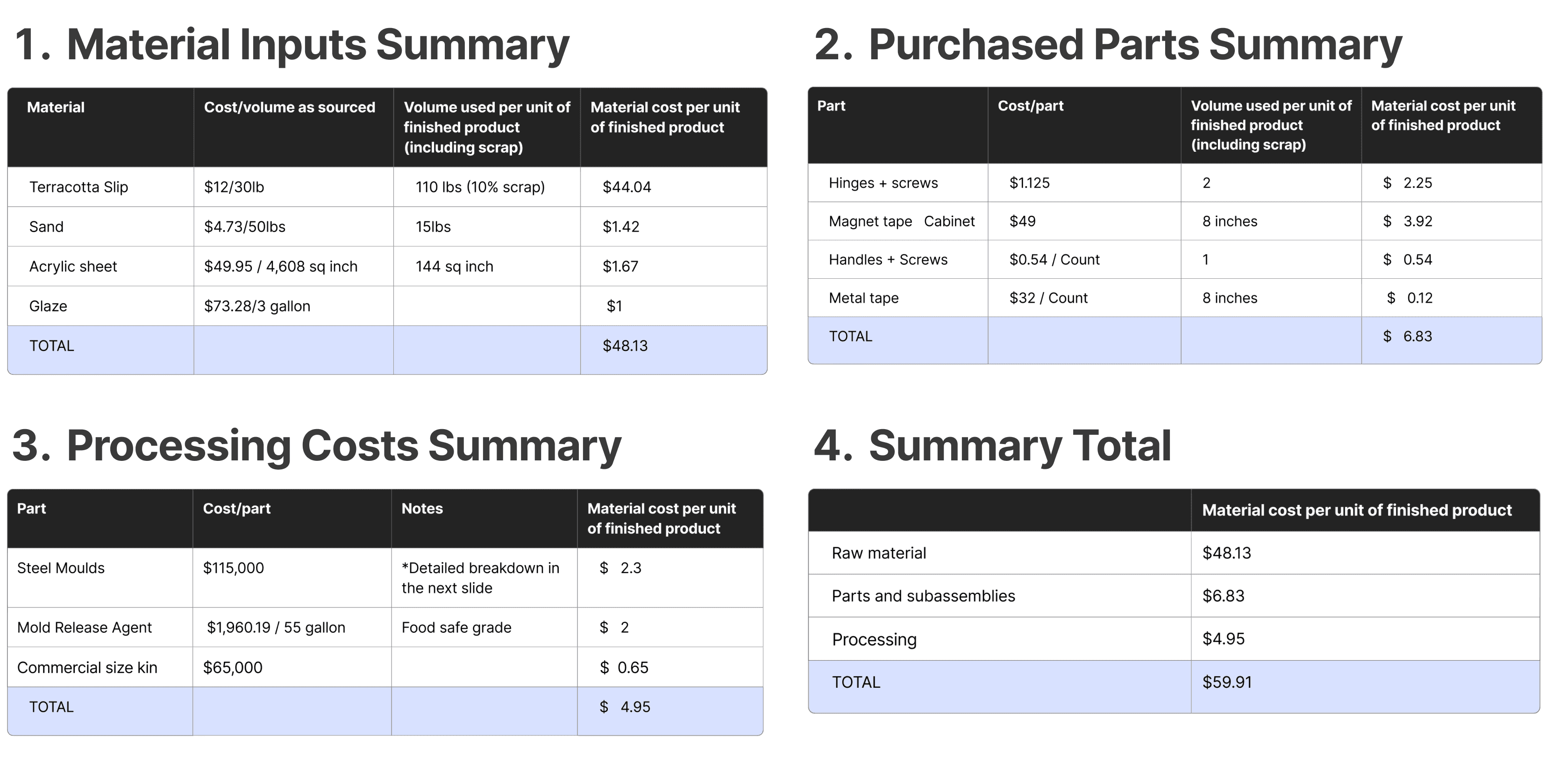 05 // Cost Summary and Marketing